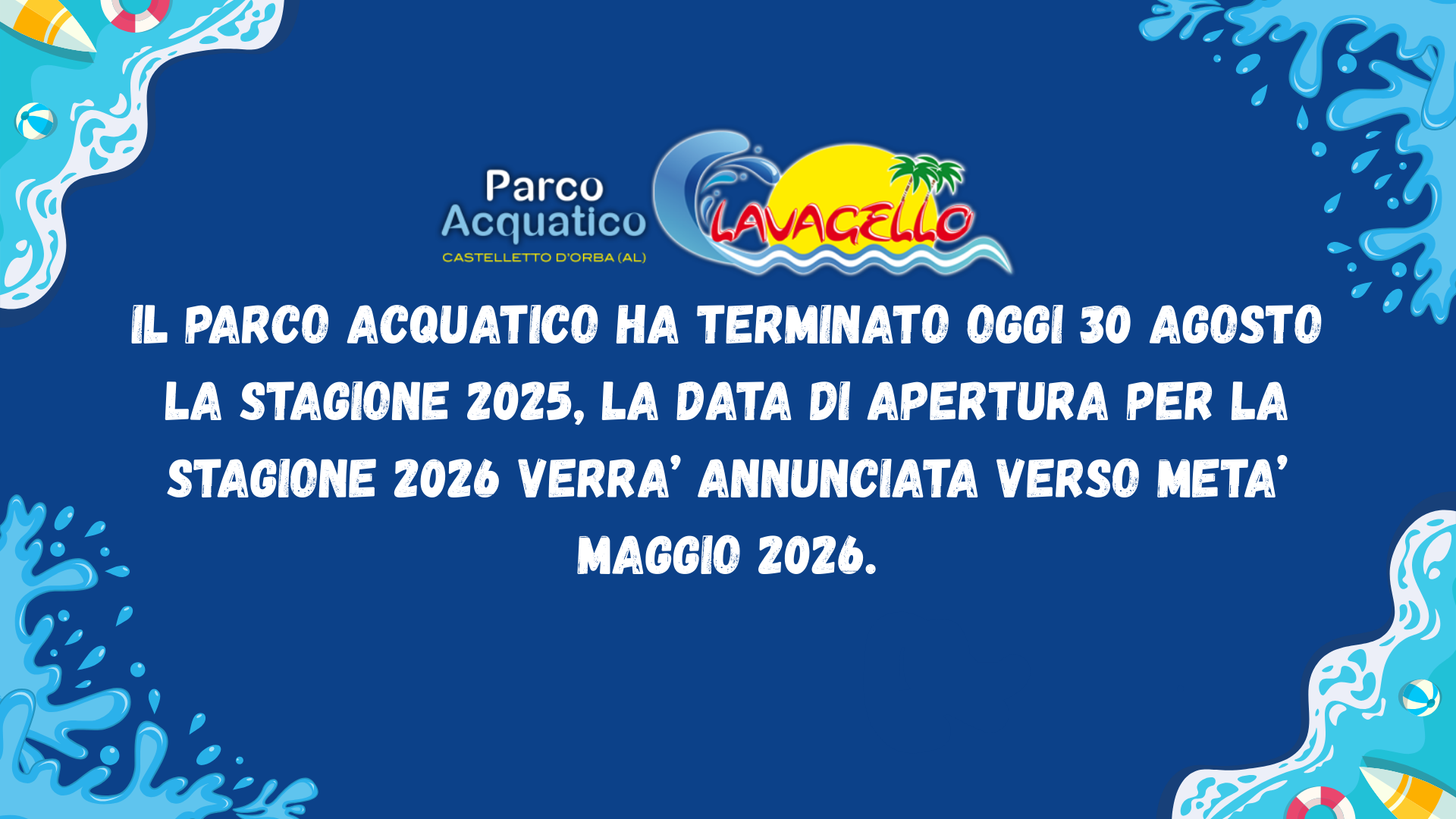 IL Parco Acquatico Lavagello è chiuso, riaprirà per la stagione 2026.
